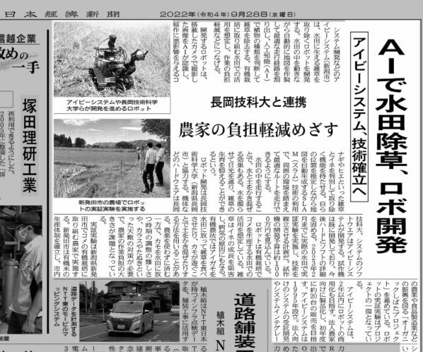 2022年 9月 28日付で、読売新聞に掲載されました。 弊社にて開発中のロボット開発について、取り上げて...
