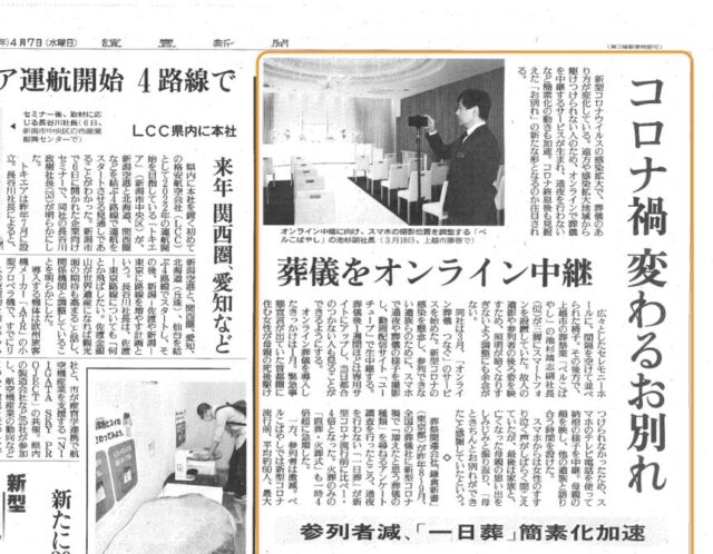 2021年 4月 7日付で、読売新聞に掲載されました。 弊社にて開発したシステム「Live’de葬儀」を取...