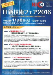 「NICO IT新技術フェア 2016」に出展します。 日時:2016年11月8日(火) 10:00~17:00 会場:...