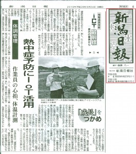 2016年8月24日(水)付けの新潟日報朝刊内に掲載していただきました。 ヘルメット内にセンサーを入れて...