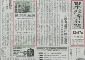 2015年12月17日(木)付けの日本経済新聞・朝刊内、新潟経済のページに掲載していただきました。 新潟県...